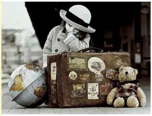Y un barco de esperanzas cruza el mar.América, la tierra del sueño azul.